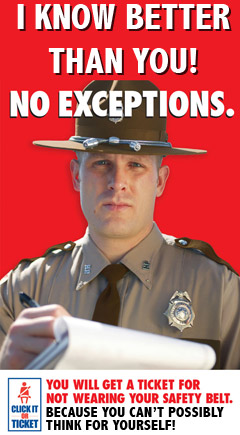 Side note - We're proud that we're one libertarian website that continually covers the seat belt law issue, unlike other so-called "libertarians." Photo credit - Fark.com